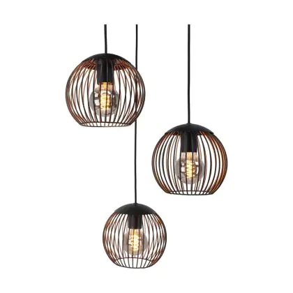 Beschreibung Eglo Pendelleuchte Almanzora Stahl Schwarz Bernstein | IP20 - Geeignet für 3x E27