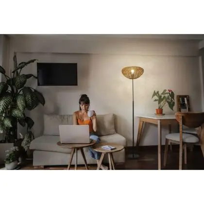 Da das Leuchtmittel nicht enthalten ist, empfehlen wir Ihnen die Verwendung von energieeffizienten LED-Lampen mit E27-Fassung. Je nach gewünschtem Effekt können Sie zwischen warmweißem, neutralweißem oder kaltweißem Licht wählen. Dimm-Optionen stehen ebenfalls zur Verfügung, sofern die Stehlampe mit einem entsprechenden Dimmer ausgestattet ist.