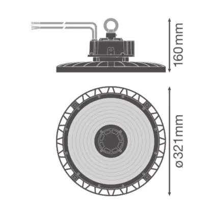 Beschreibung Ledvance LED Highbay Gen 5 Aluminium Schwarz 150W 26250lm 70D - 840 Kaltweiß | IP66 - 1-10V Dimmbar