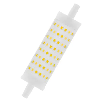 Die Ledvance LED Line R7s doppelt Ended 118mm 15W 2000lm - 827 Extra Warmweiß | Dimmbar - Ersatz für 125W ist eine effiziente R7s LED-Lampe und der perfekte Ersatz für Ihre konventionelle Halogen-Stablampe mit 125W. Zudem strahlt sie Licht in der Farbtemperatur 2700K - Extra Warmweiß aus und punktet durch eine lange Lebensdauer.