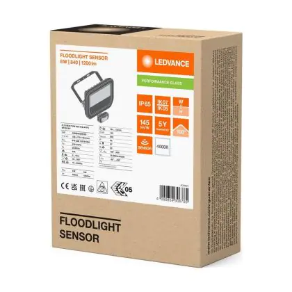 Beschreibung Ledvance Led-Scheinwerfer Aluminium Weiß 8W 1200lm 100D - 840 Kaltweiß | IP65 - Bewegungs- Und Lichtsensor - Symmetrisch