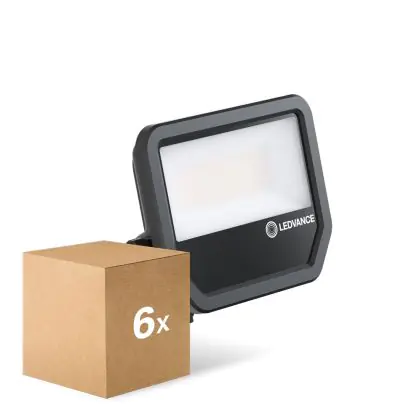 Der Mehrfachpackung 6x Ledvance LED-Scheinwerfer Aluminium Schwarz 69W 10000lm 100D - 840 Kaltweiß | IP66 - Symmetrisch ist ein Scheinwerfer und strahlt Licht in der Farbtemperatur 4000K - Kaltweiß aus. Zudem punktet der LED-Scheinwerfer durch eine lange Lebensdauer.