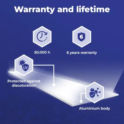 Wir von BeleuchtungDirekt haben mit dem LED-Panel von Noxion gute Erfahrungen gemacht. Daher bieten wir Ihnen für dieses Produkt eine Garantie von 6 Jahre an.