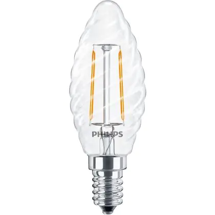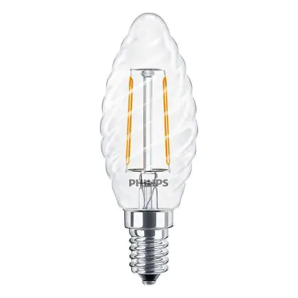 Die Philips Corepro LED Kerze E14 Gedreht Kerze Fadenlampe Klar 2W 250lm - 827 Extra Warmweiß | Ersatz für 25W ist eine effiziente E14 LED-Lampe mit Retrodesign und der perfekte Ersatz für Ihre konventionellen 25W Lampen mit E14. Zudem strahlt sie Licht in der Farbtemperatur 2700K - Extra Warmweiß aus und punktet durch eine lange Lebensdauer.
