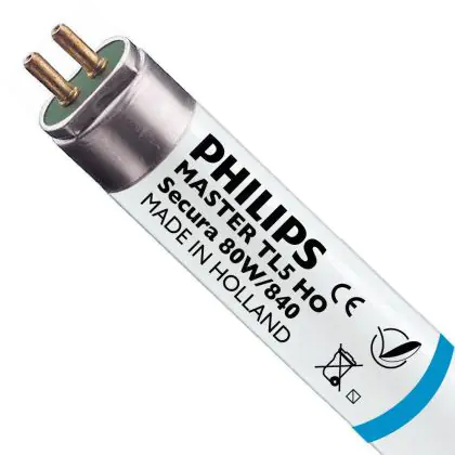 Die Philips TL5 HO Secura 80W 840 (MASTER) überzeugt mit einer neutralen kaltweißen Farbtemperatur. Die Lichtröhre lässt sich besonders vielfältig einsetzen.