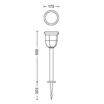 Beschreibung Philips Solar Radii Sockellampe Metall Schwarz 1.3W 250lm - 830 Warmweiß | IP44